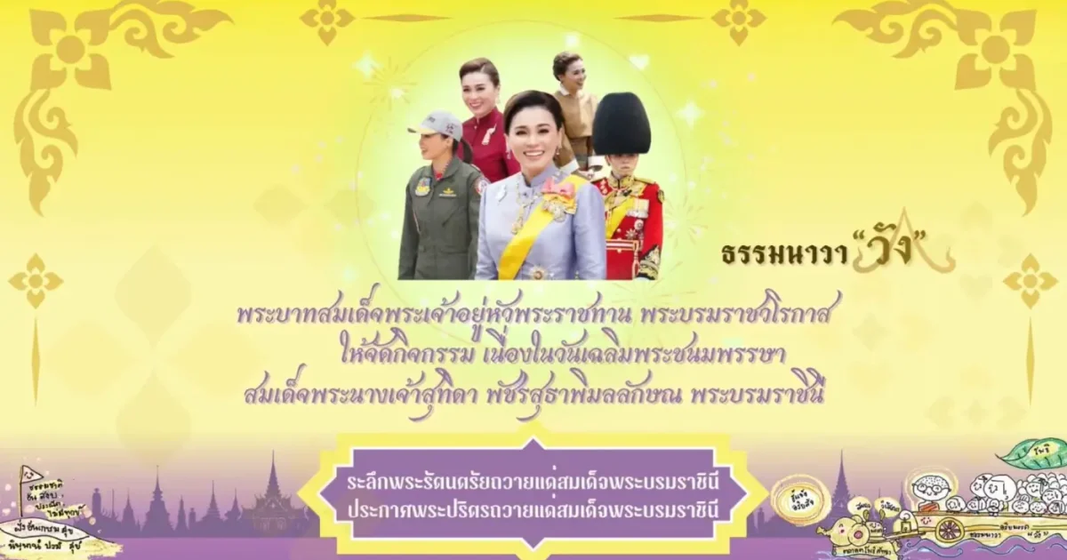 กิจกรรม ธรรมนาวา “วัง” 30 พฤษภาคม 2568 โดย ธีระศักดิ์ สมยศ / หน่วยราชการในพระองค์,พระราชินี,หน่วยราชการในพระองค์ พระบาทสมเด็จพระเจ้าอยู่หัว พระราชทาน พระบรมราชวโรกาสให้จัดกิจกรรม ธรรมนาวา “วัง” เนื่องในวันเฉลิมพระชนมพรรษาสมเด็จพระนางเจ้าสุทิดา พัชรสุธาพิมลลักษณ พระบรมราชินี ตั้งแต่วันที่ 1 – 1 0 มิถุนายน 2568 ขอเชิญชวน พสกนิกรชาวไทยทุกหมู่เหล่าร่วมถวายชัยมงคล สมเด็จพระนางเจ้าสุทิดา พัชรสุธาพิมลลักษณ พระบรมราชินี เนื่องในวันเฉลิมพระชนมพรรษา 3 มิถุนายน 2568 ผ่านกิจกรรม ธรรมนาวา “วัง” ตั้งแต่วันที่ 1 – 1 0 มิถุนายน 2568 ตามรายละเอียดนี้ FacebookFacebookXXLINELine